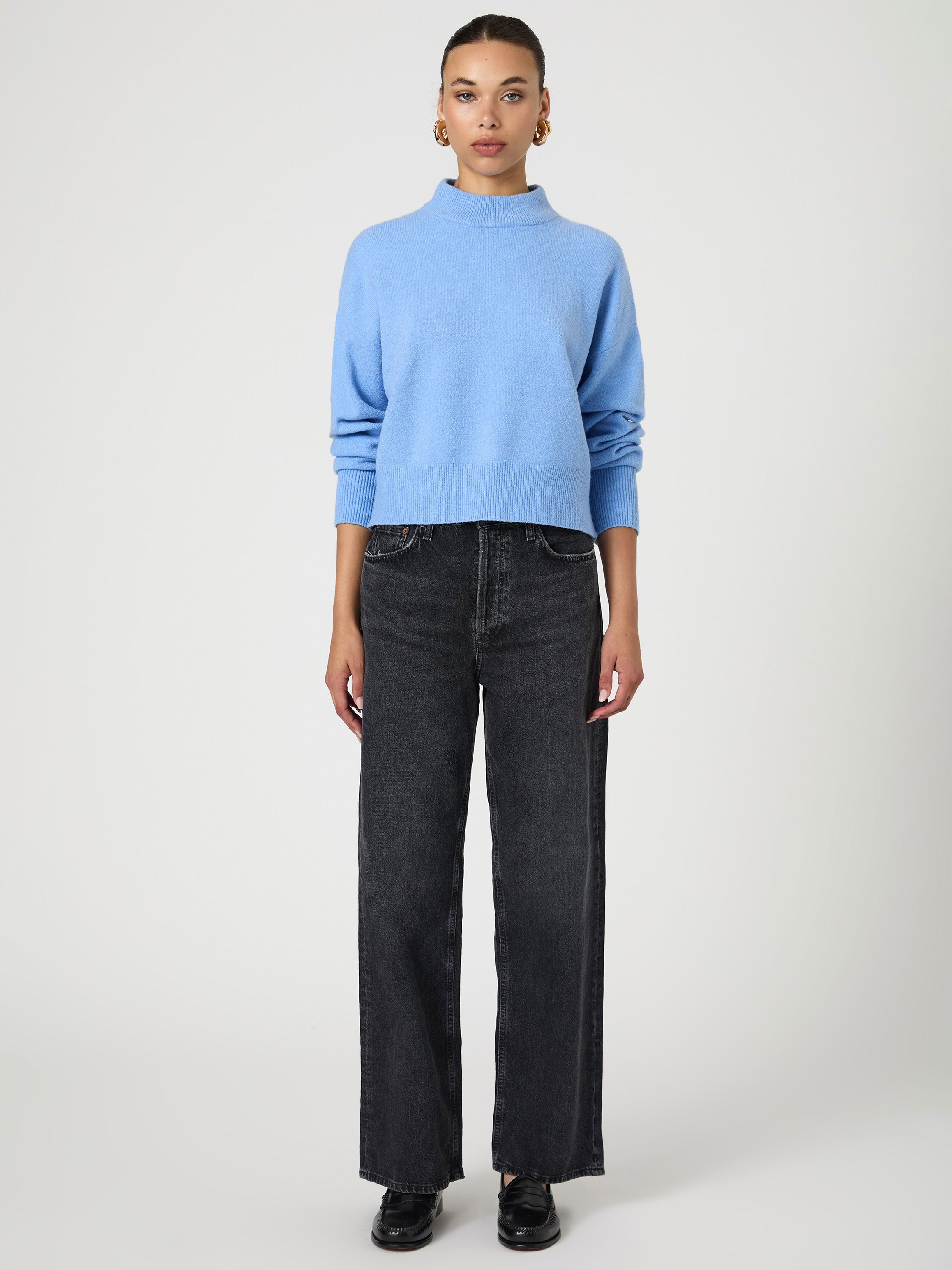 Elevate your winter wardrobe with our Vhari Mock Neck Sweater. Crafted from a cozy wool blend, this cropped sweater boasts a sophisticated mock neck that adds an air of elegance to any outfit. Stay warm and stylish all season long.
