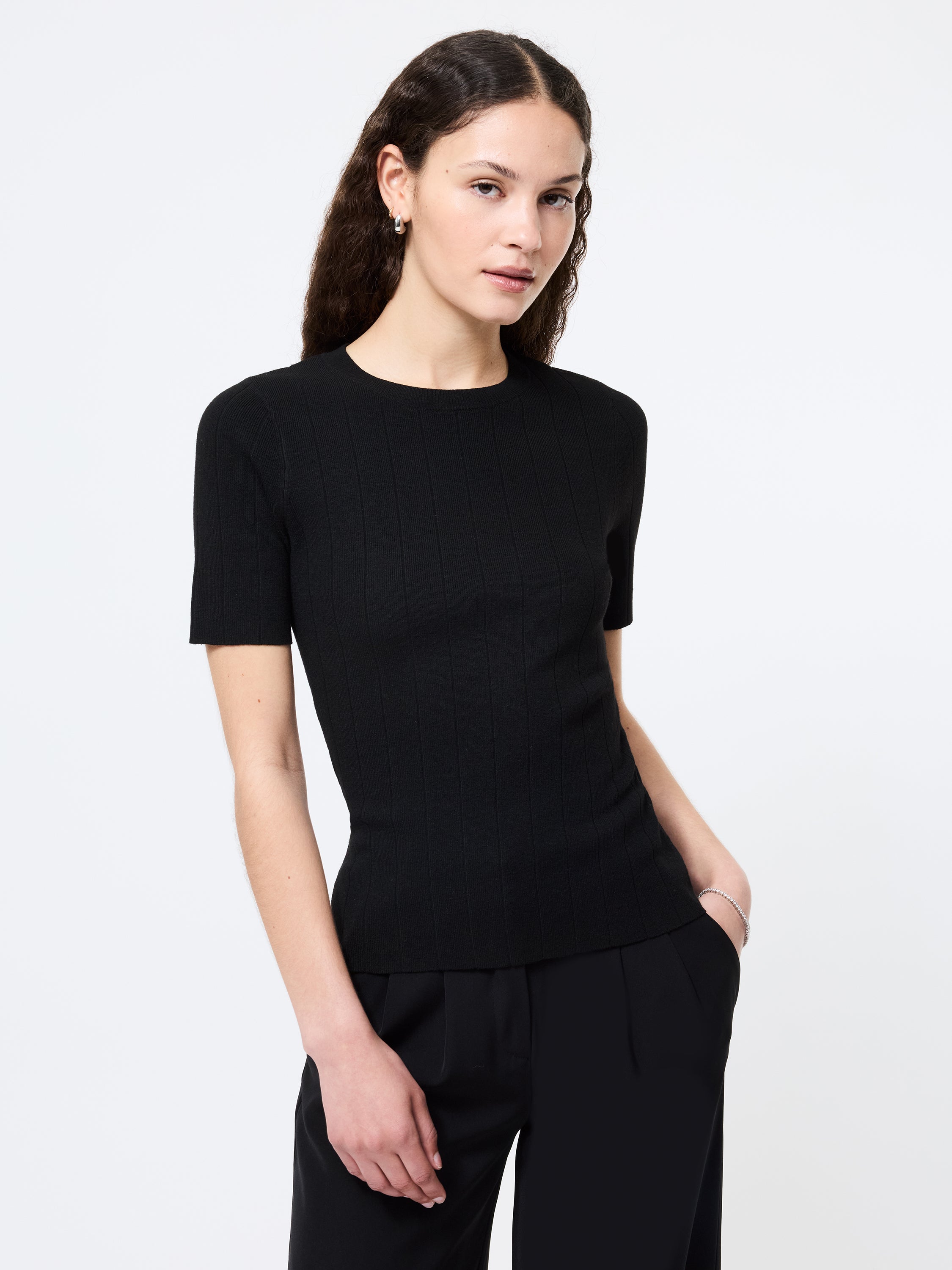 Meet the Marley Knit Wide Rib Top—your new go-to for low-effort polish. The wide rib texture adds subtle interest to this classic short sleeve silhouette, making it an easy pick for dressing up denim or layering under jackets.